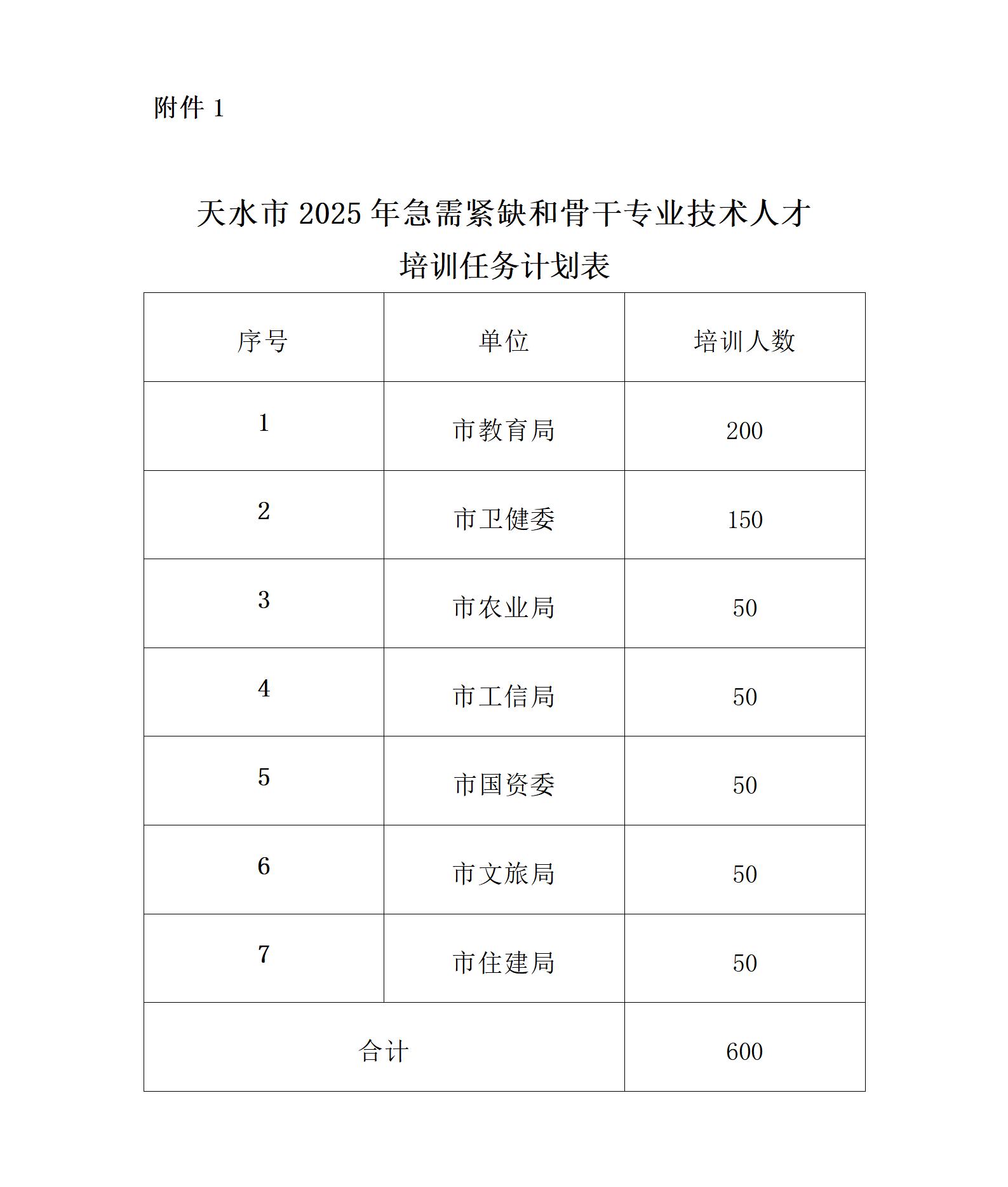 附件:1.天水市2025年急需紧缺和骨干专业技术人才培训 任务计划表