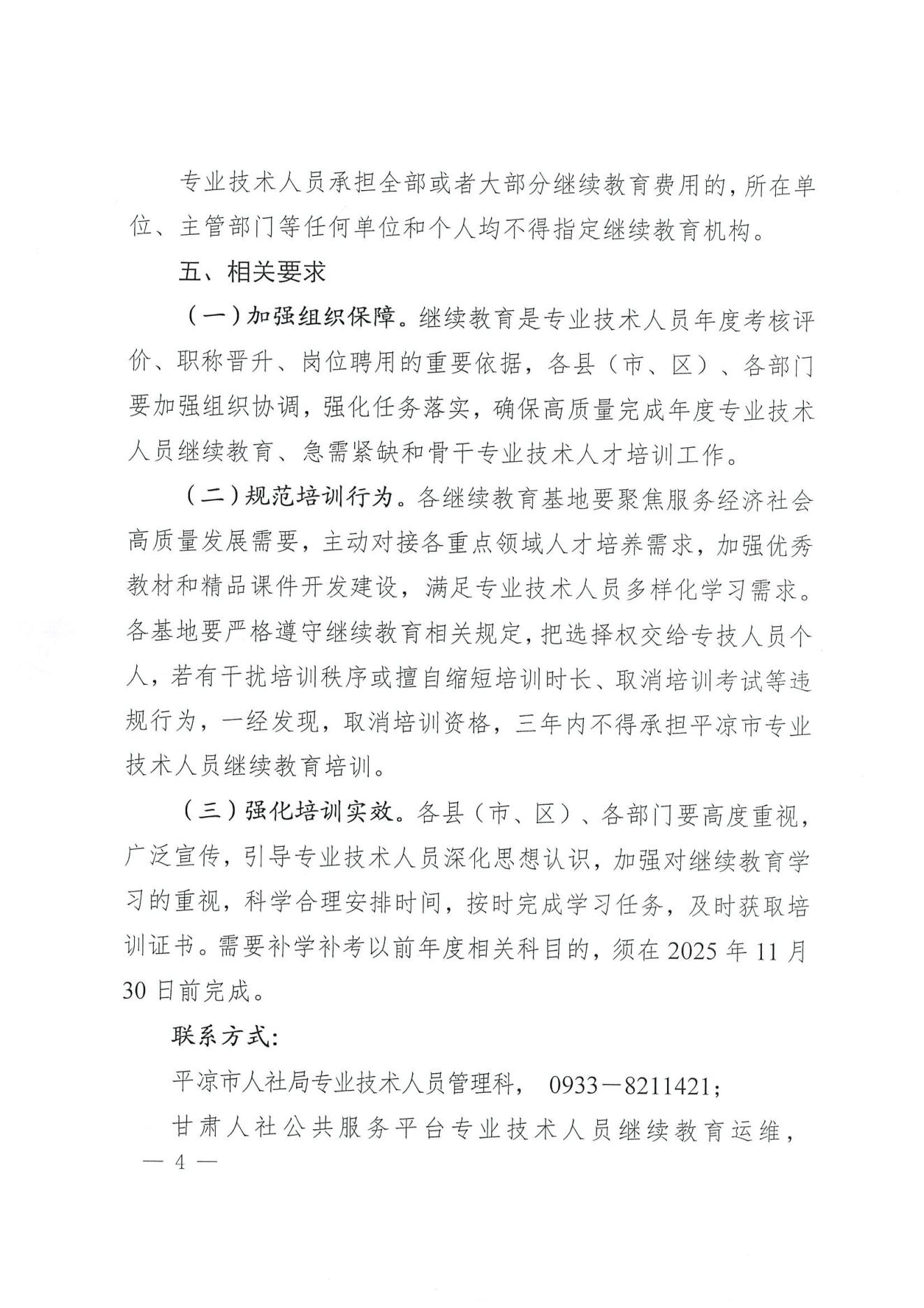 平凉市:关于做好2025年平凉市专业技术人员继续教育工作的通知